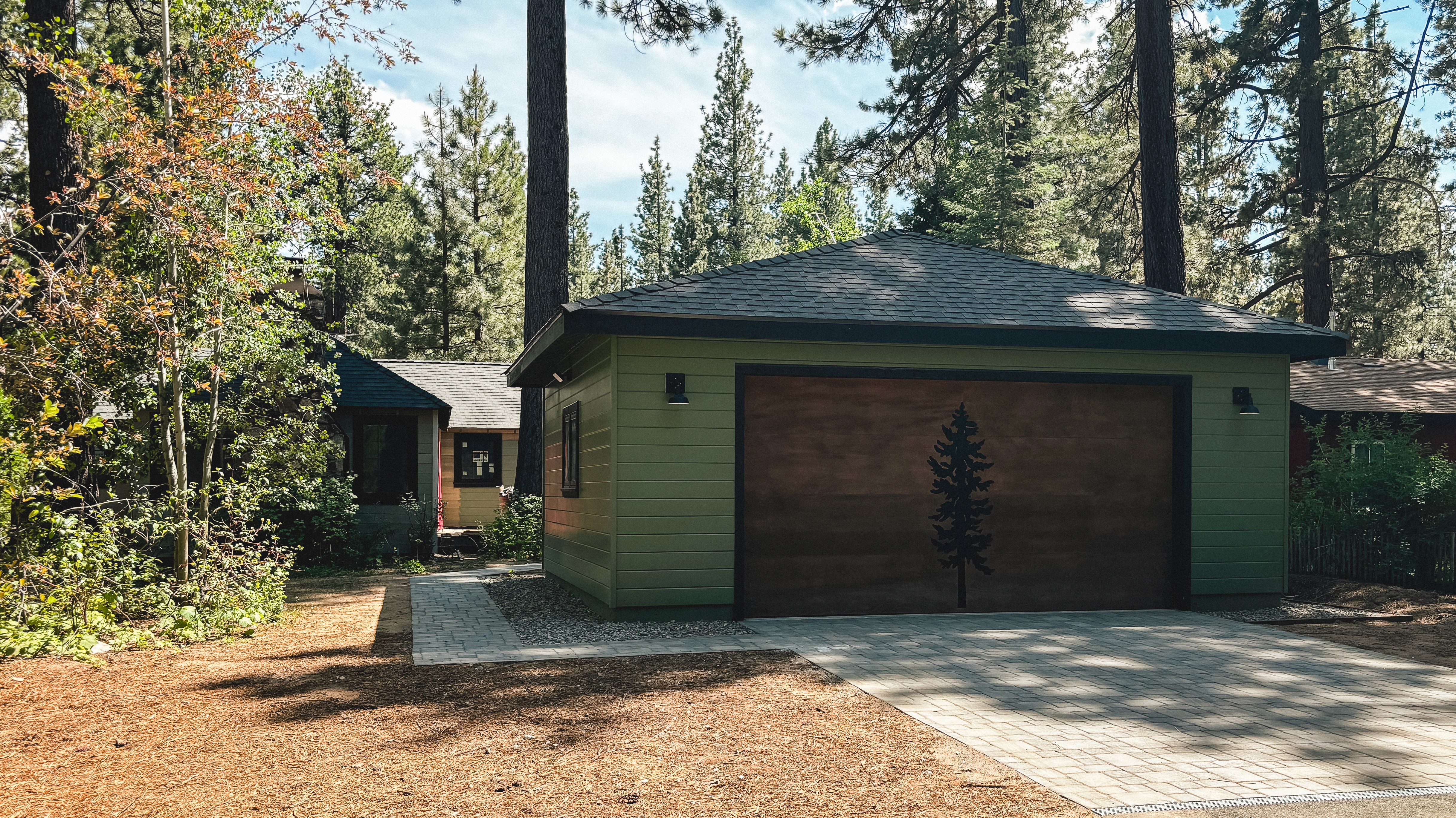 Our team built a detached oversized garage with an ADU above to fit a boat and the homeowners mother. We used firesafe materials, such as stucco and hardie siding, metal roof and fiberglass windows, following TRPA aesthetic guides for neighborhood alignment. We collaborated closely on the ADU interior to bring in craftman design details, real hardwood floors, tile wainscoting in the bathroom and a beautiful full stone fireplace to make the homeowner's mother feel right at home in the mountains.